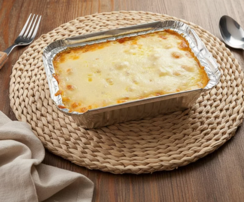 Nossas lasanhas são montadas diretamente na marmita. Usamos massa pronta para lasanha, molho( bolonhesa ou de frango), mussarela e presunto