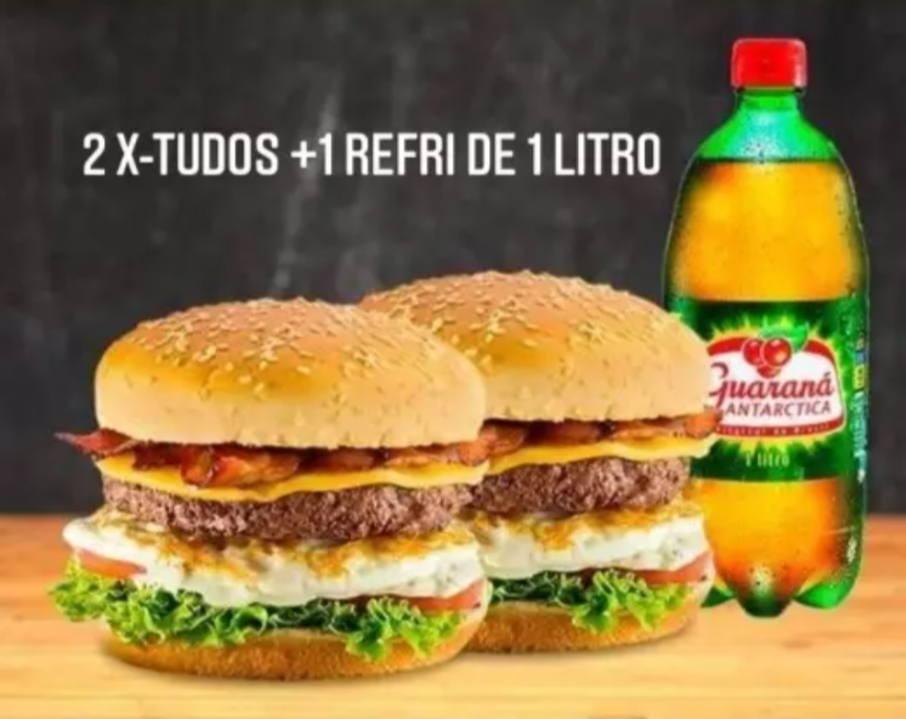 2 x-tudos completos acompanhados por 1 guaraná de 1L